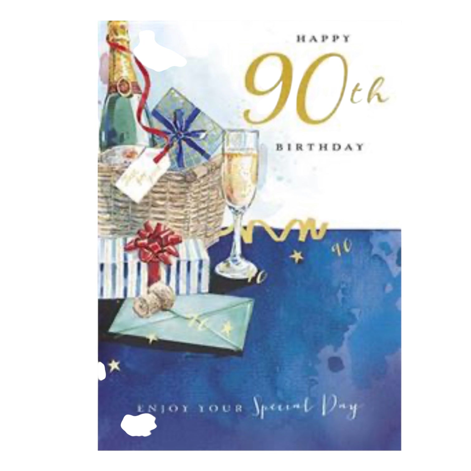 This beautifully designed 90th birthday card combines premium quality with a celebratory theme. The perfect way to send warm wishes for this special milestone celebration with a touch of elegance and festivity.