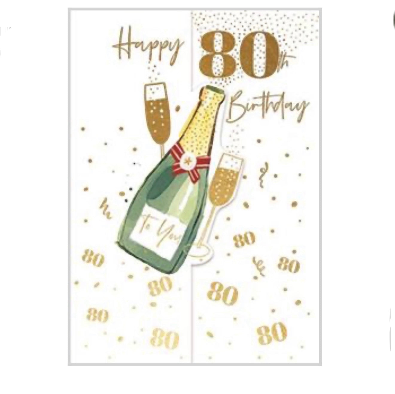 This beautifully designed 80th birthday card combines premium quality with an elegant champagne theme. The perfect way to send warm wishes for this special milestone celebration with a touch of sophistication and sparkle.