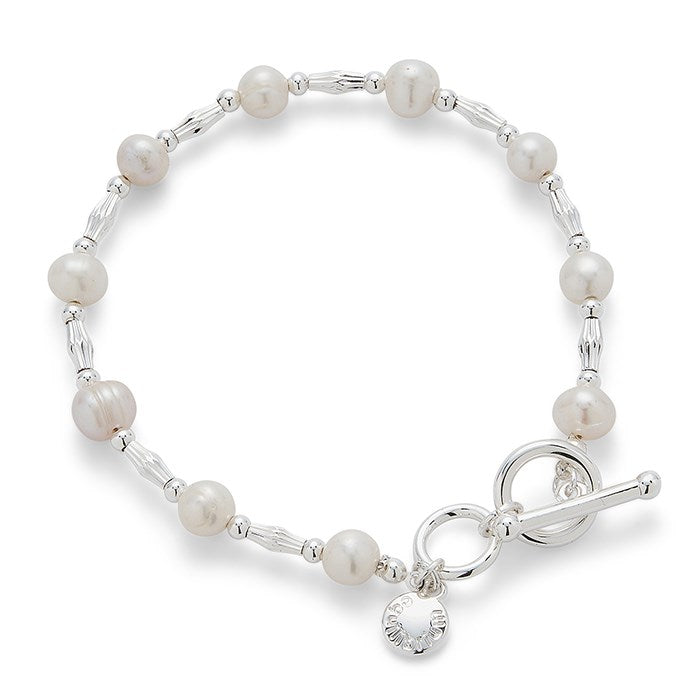 Freshwater Pearl Modern Silver Plated T Bar Bracelet