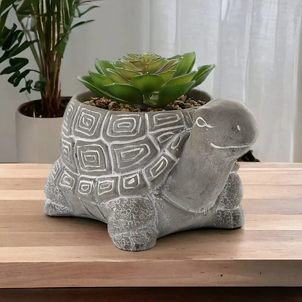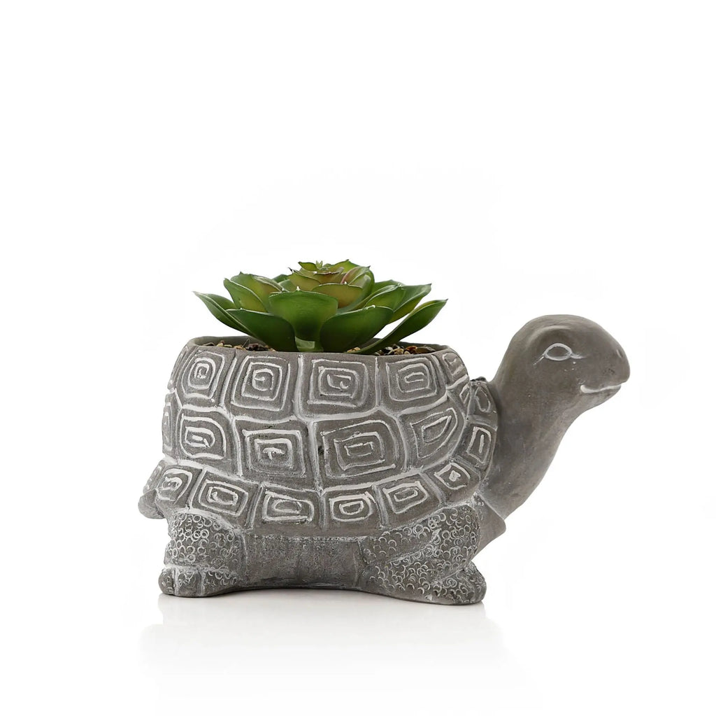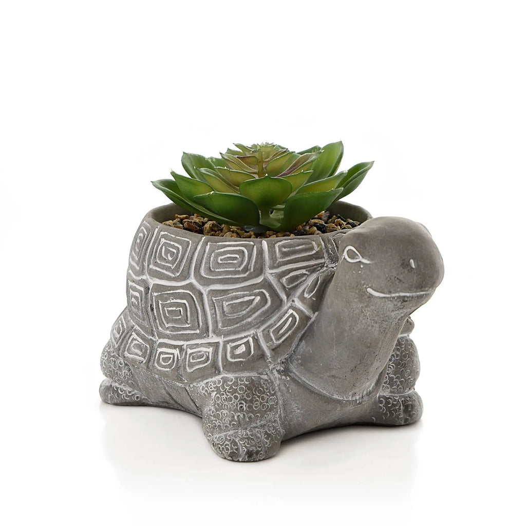 Cement Effect Tortoise Planter with Succulent