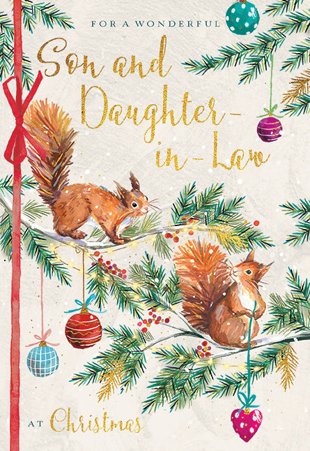 Christmas Card, Son & Daughter In Law - Festive Squirrels is backordered and will ship as soon as it is back in stock.