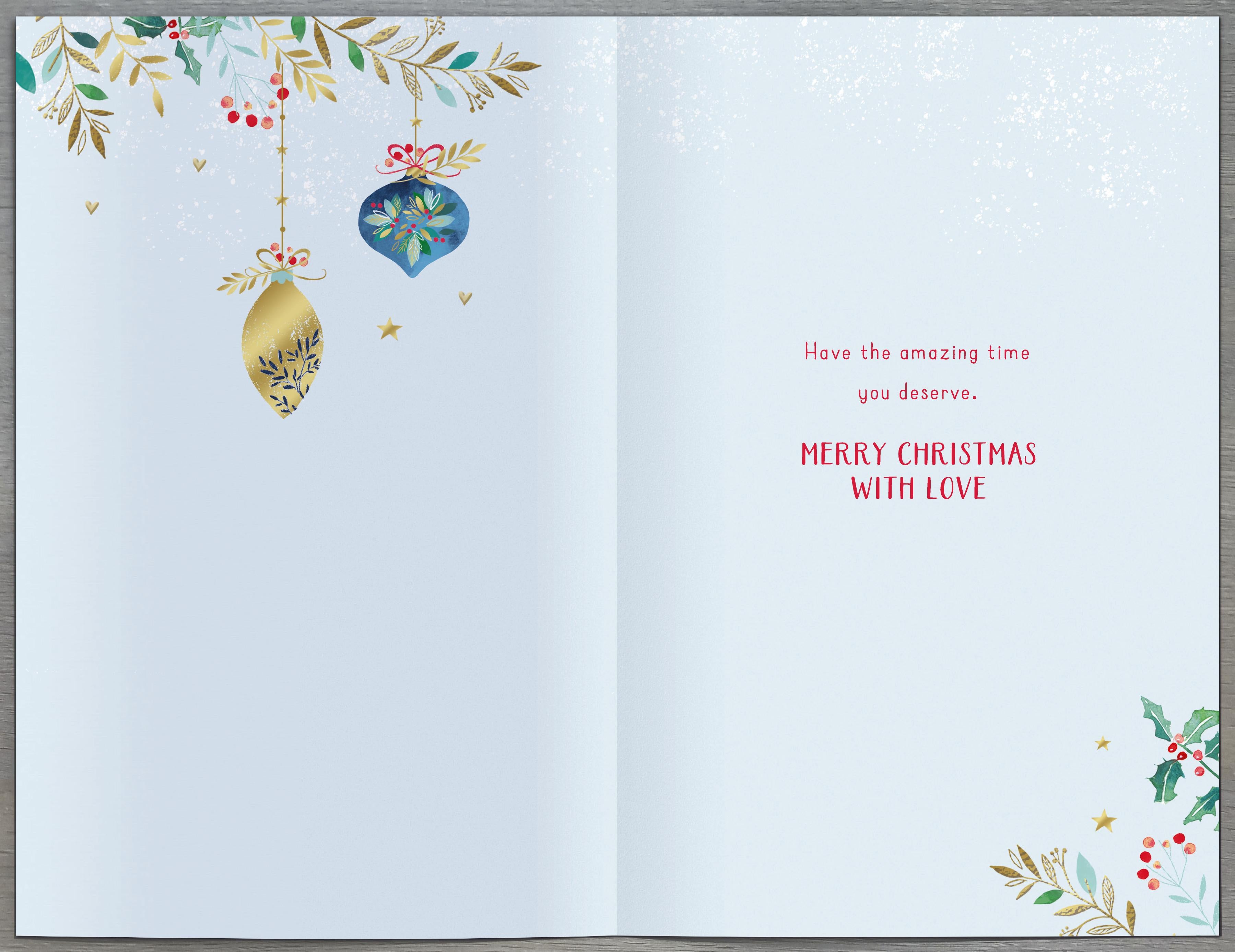Christmas Card, Granddaughter & Boyfriend - Baubles