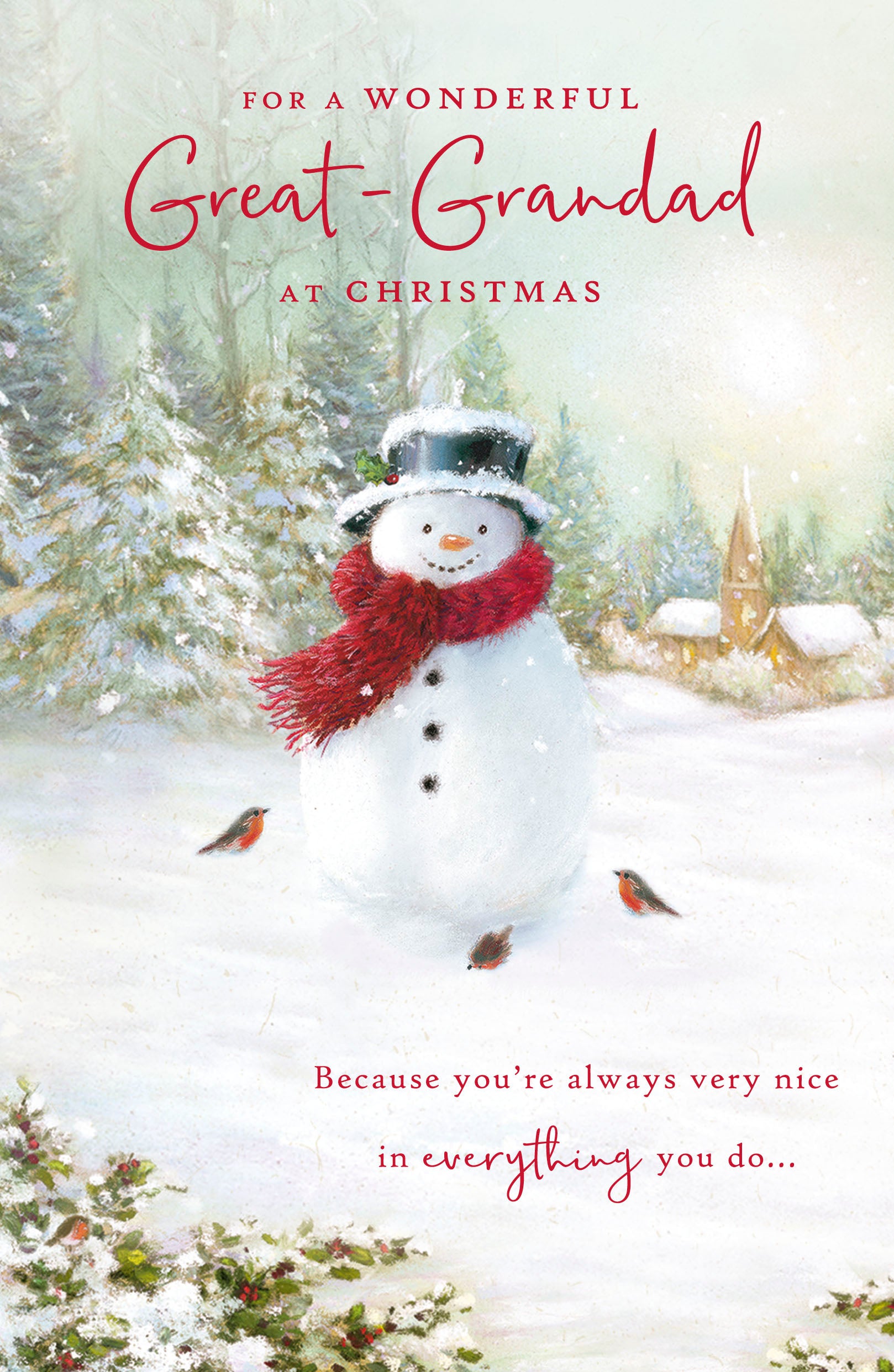 Celebrate the magic of the season with this charming Christmas card designed especially for your Great Grandad. Featuring a delightful snowman, it brings warmth and festive cheer in a heartfelt way. The perfect gesture to show your love and appreciation, this card makes holiday moments even more memorable for a special family member.