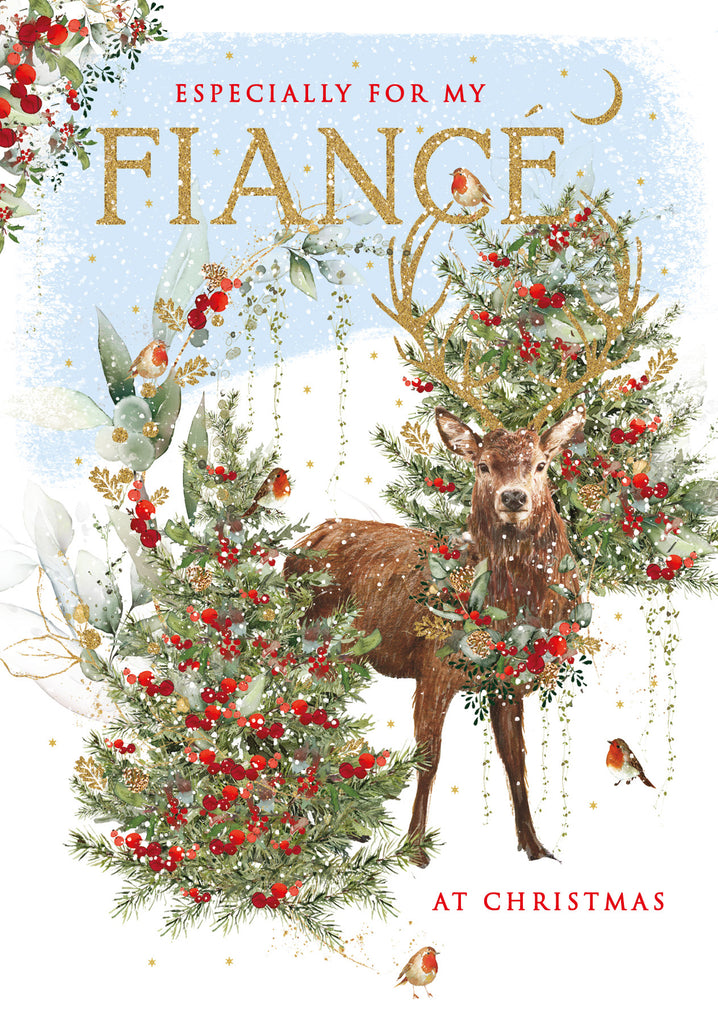 Christmas Card, Fiance - Deer/Xmas Tree