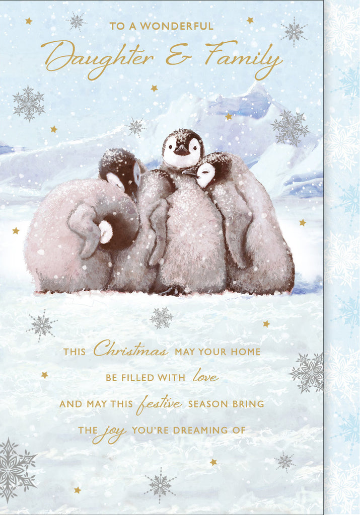 Christmas Card, Daughter & Fiance - Penguin Huddle