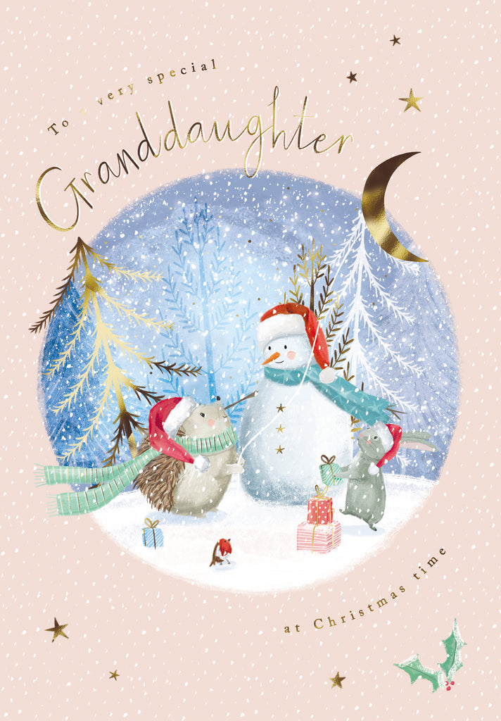 Granddaughter - Hedgehog With Snowman & Friends