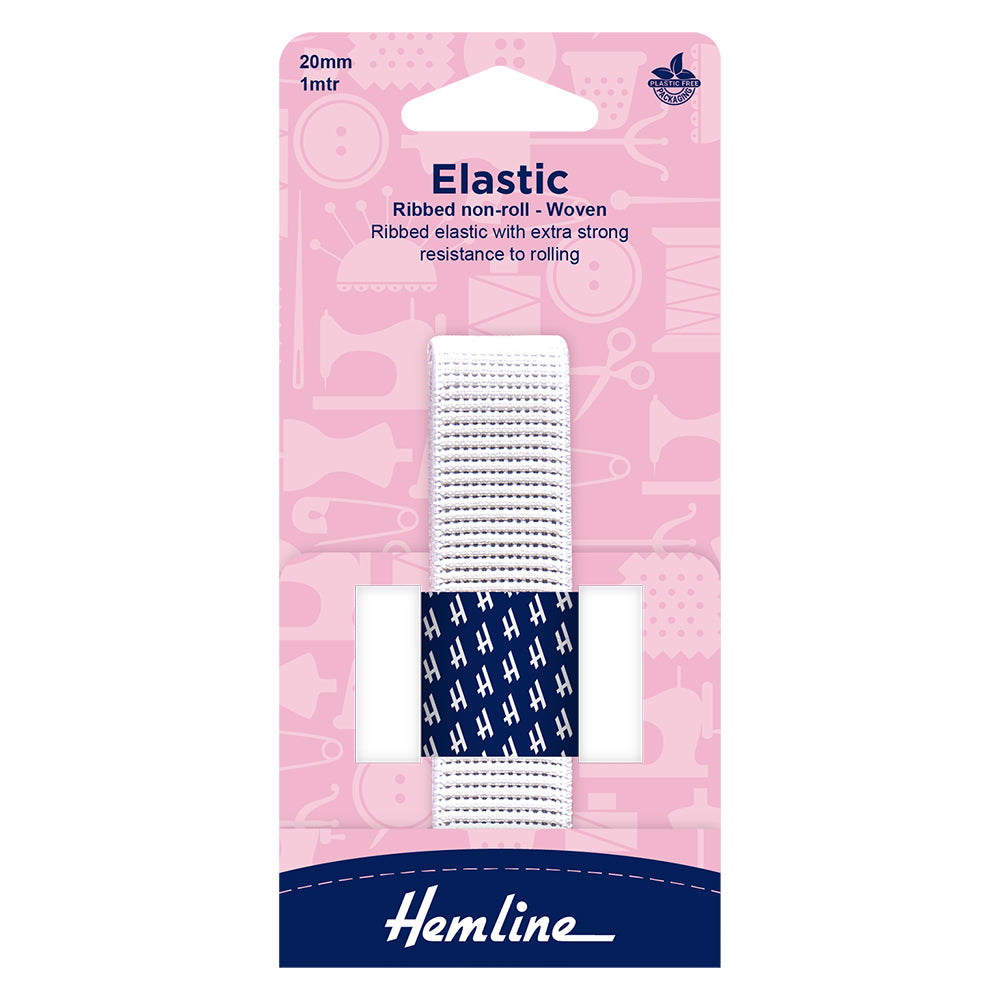 Non-Roll Ribbed Elastic - 1m x 20mm White