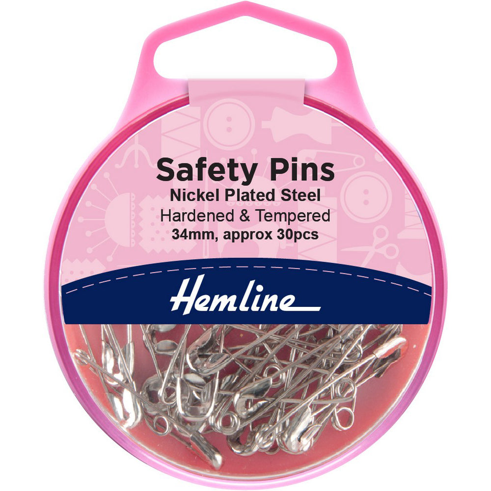 Safety Pins: 34mm: Nickel: 30 Pieces