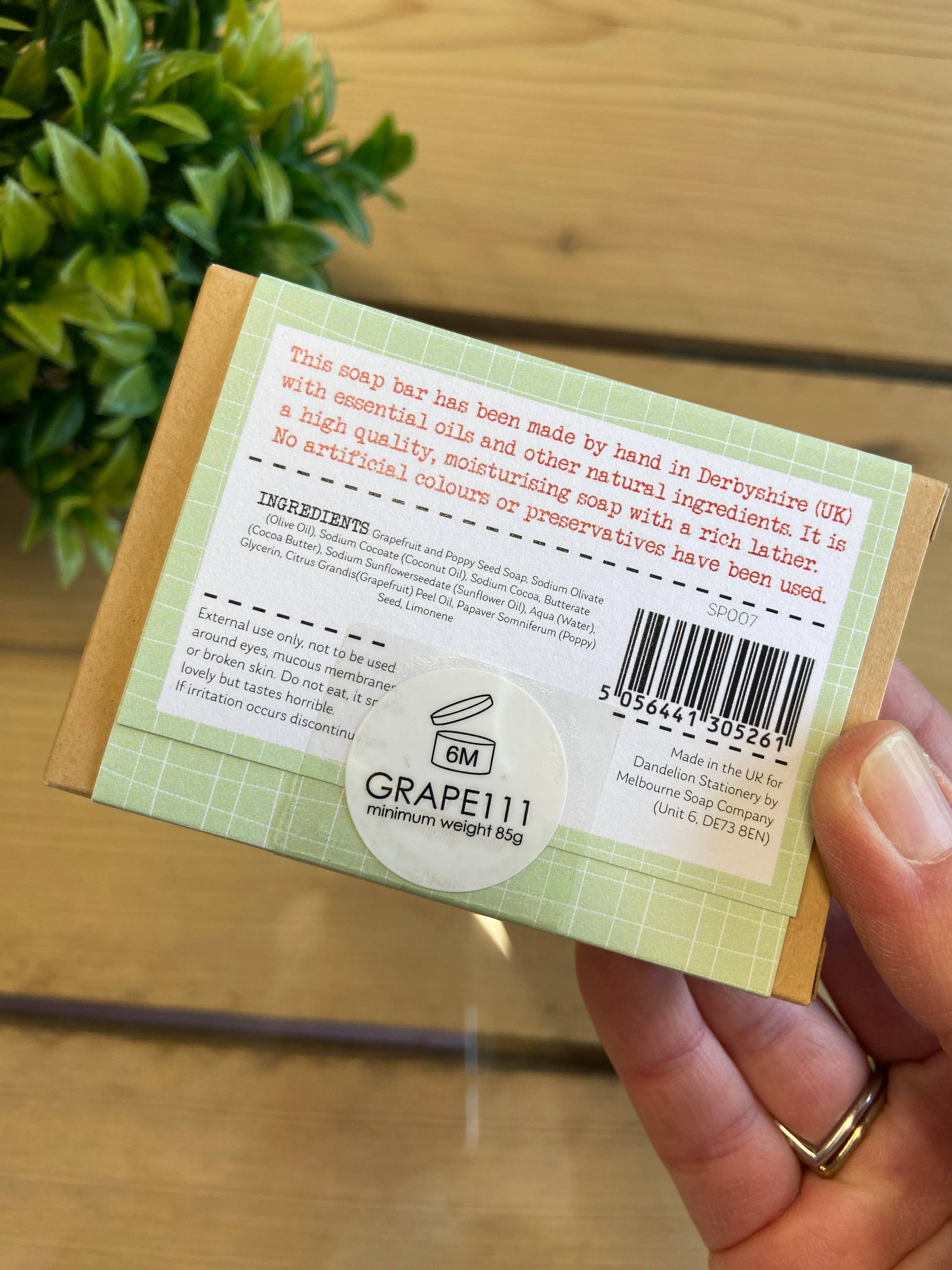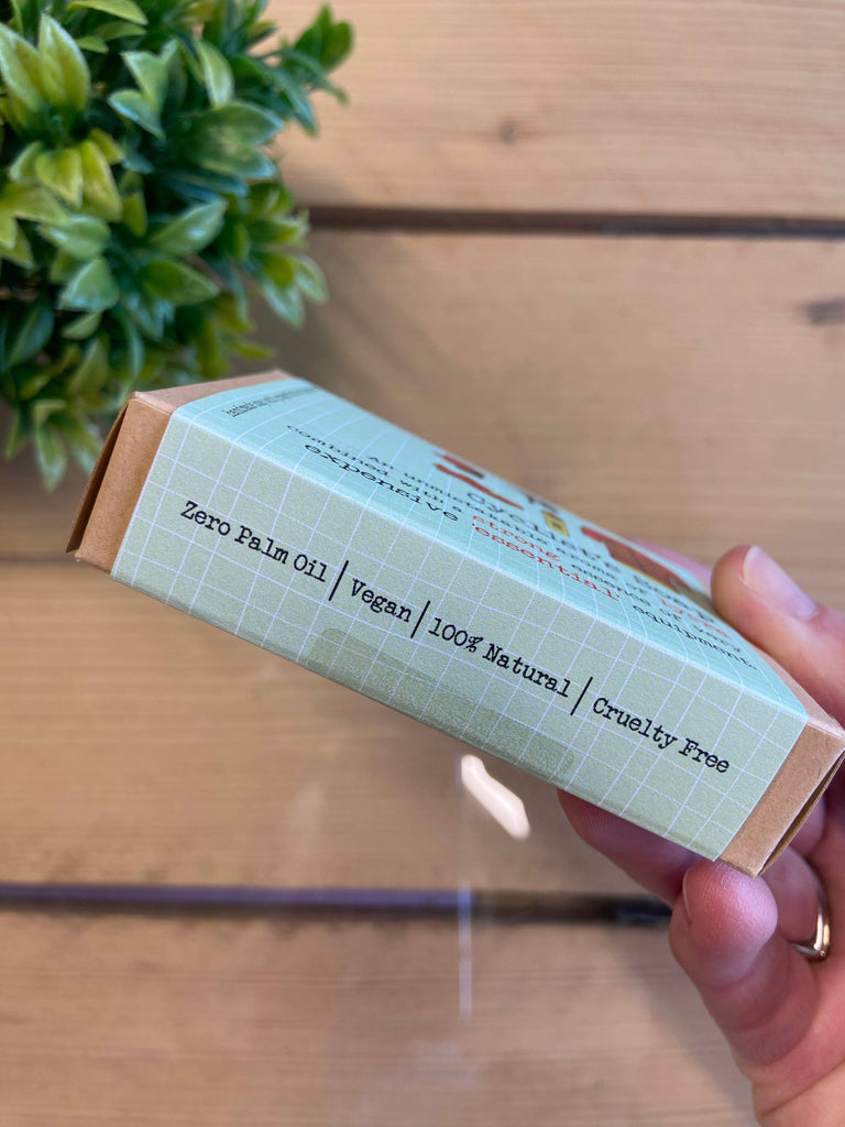 Handmade in the UK with essential oils and other natural ingredients. Luxurious, moisturising soap with a rich lather - no artificial colours or preservatives have been used. Zero palm oil, vegan and 100% natural. Cruelty free soap. Perfect for a gift for a loved one. A premium quality product by Dandelion Stationery.