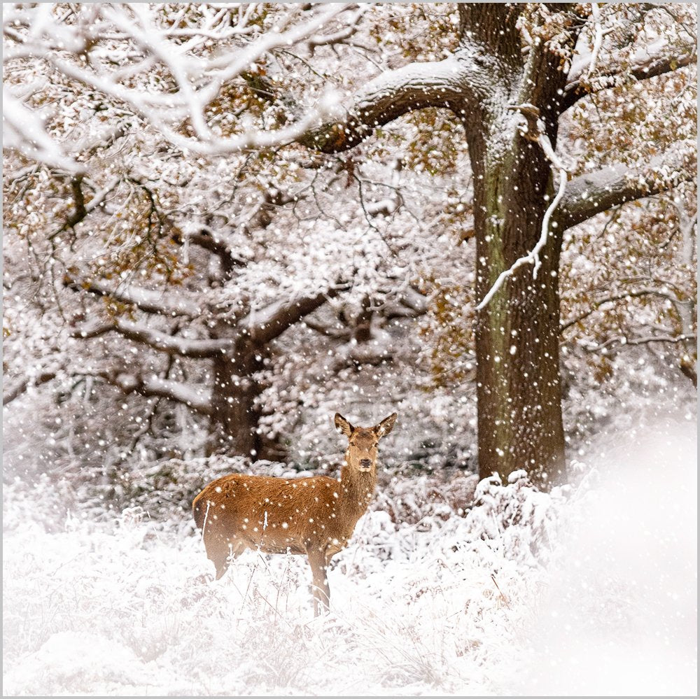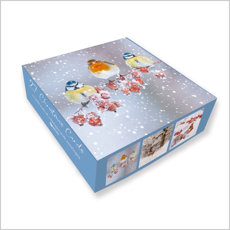 This boxed set features twenty-seven beautifully crafted Christmas cards showcasing three charming snowy woodland animal designs, with nine cards of each design included. Each card measures 160 x 160mm and comes with matching envelopes, making them perfect for sending heartfelt holiday greetings. Printed on smooth board and finished with a gloss UV varnish, these cards offer a festive shine and a premium feel. Ideal for sharing warm wishes with family and friends, this set combines delightful artwork with quality materials to brighten the holiday season.