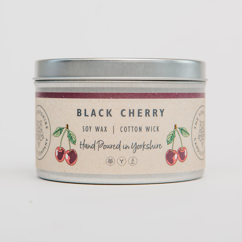 Perfect for creating a warm, inviting ambiance, this large tin candle brings the indulgent pleasure of black cherry elegance to any room.