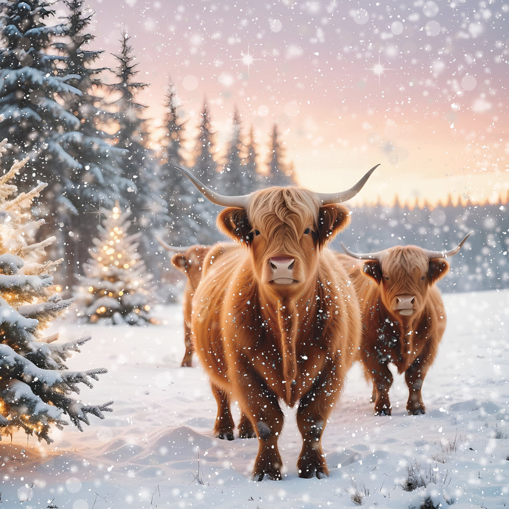 Boxed Cards - Darkroom, Highland Cows In Snow