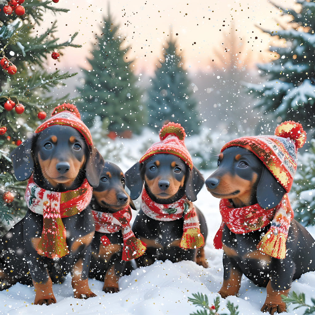 Boxed Cards - Darkroom Luxury, Daschund Dogs In Hats And Scarves