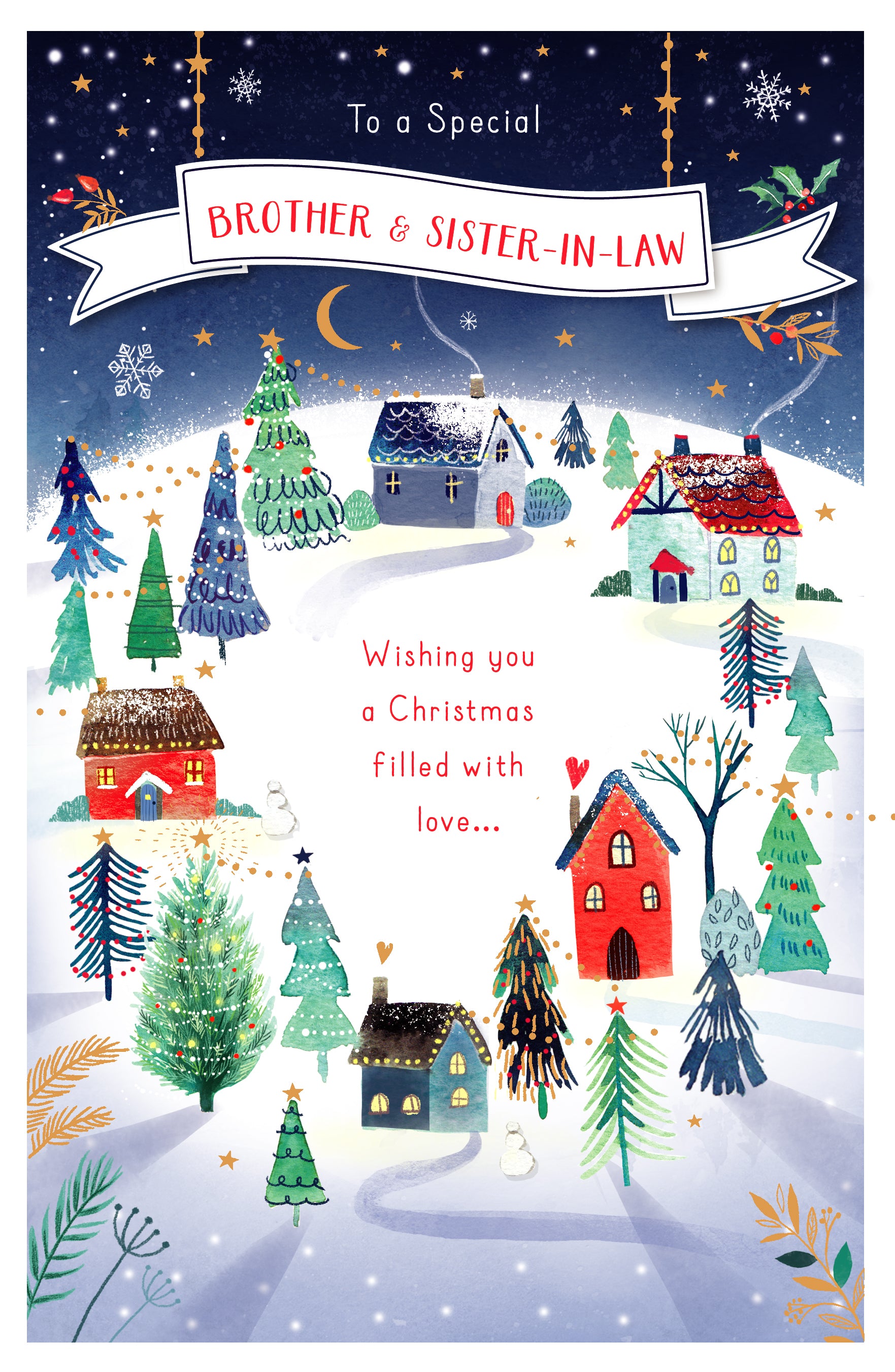 Celebrate the festive season with this charming Christmas card specially designed for your brother and sister-in-law. Featuring a cozy, snow-covered street scene, it captures the warmth and joy of the holidays. Send your heartfelt wishes wrapped in a beautiful design that shows your appreciation and love for family. Perfect for spreading cheer and making their Christmas unforgettable.