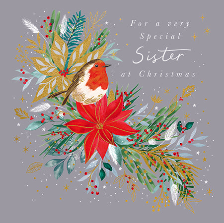 Christmas Card - Sister - Robin And Poinsettia is backordered and will ship as soon as it is back in stock.