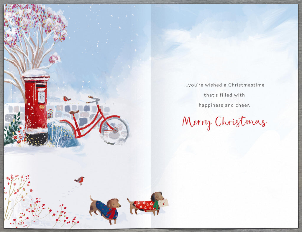 Celebrate the festive season with a smile using the "Both Of You - Dachshund Through The Snow" Christmas card. Featuring a charming dachshund in a wintery scene, this card adds a playful and warm touch to your holiday greetings. Perfect for sending cheerful wishes to loved ones, it’s a delightful way to spread joy and show you care. Make your Christmas messages unforgettable with this unique and endearing design.