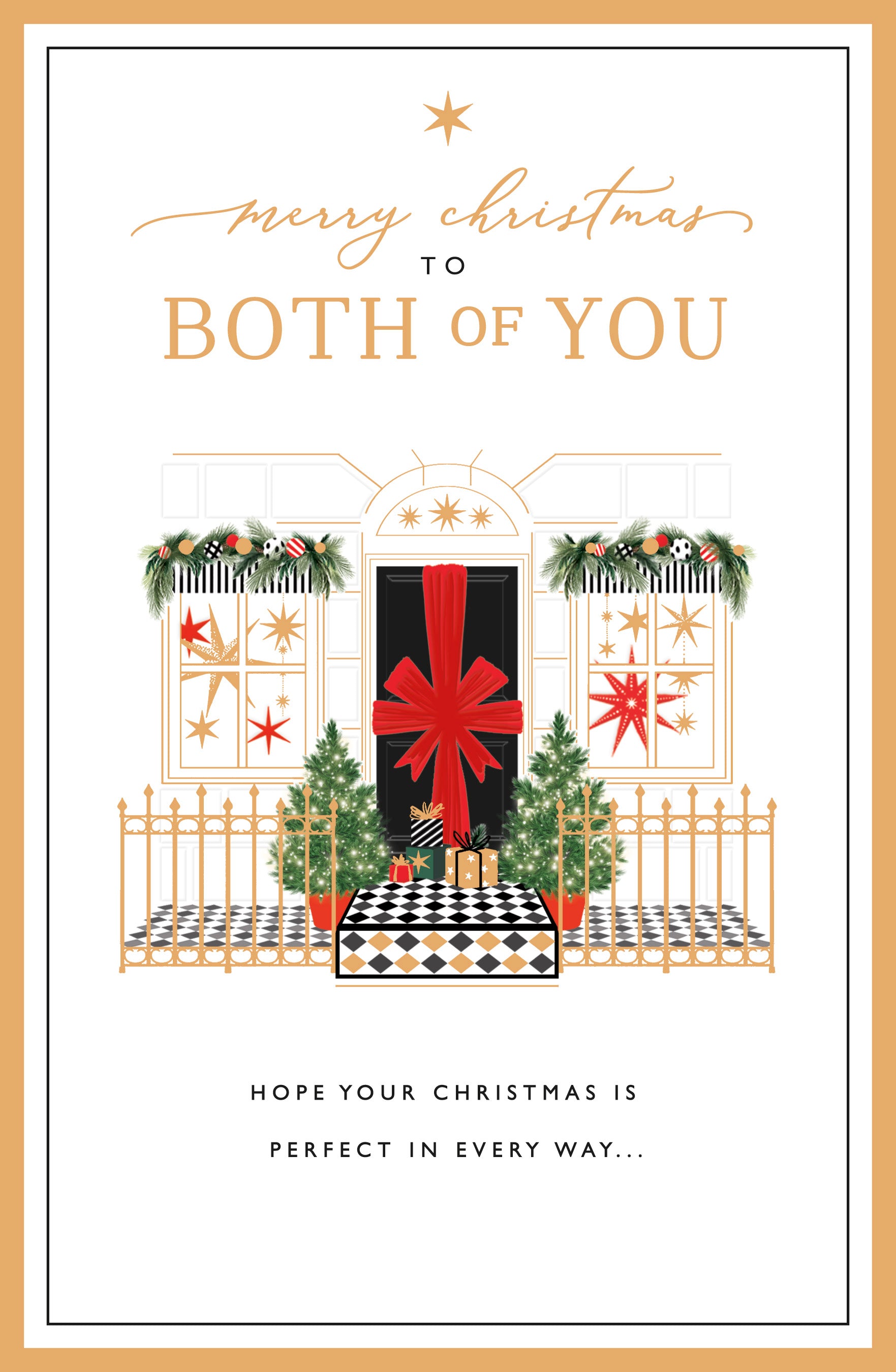 Celebrate the warmth of the season with this charming Christmas card featuring a festive red bow adorning a welcoming door. Perfect for sending heartfelt wishes to both of you, it combines classic holiday spirit with elegant simplicity. Share joy and brighten someone’s Christmas with this thoughtful and beautifully designed card.