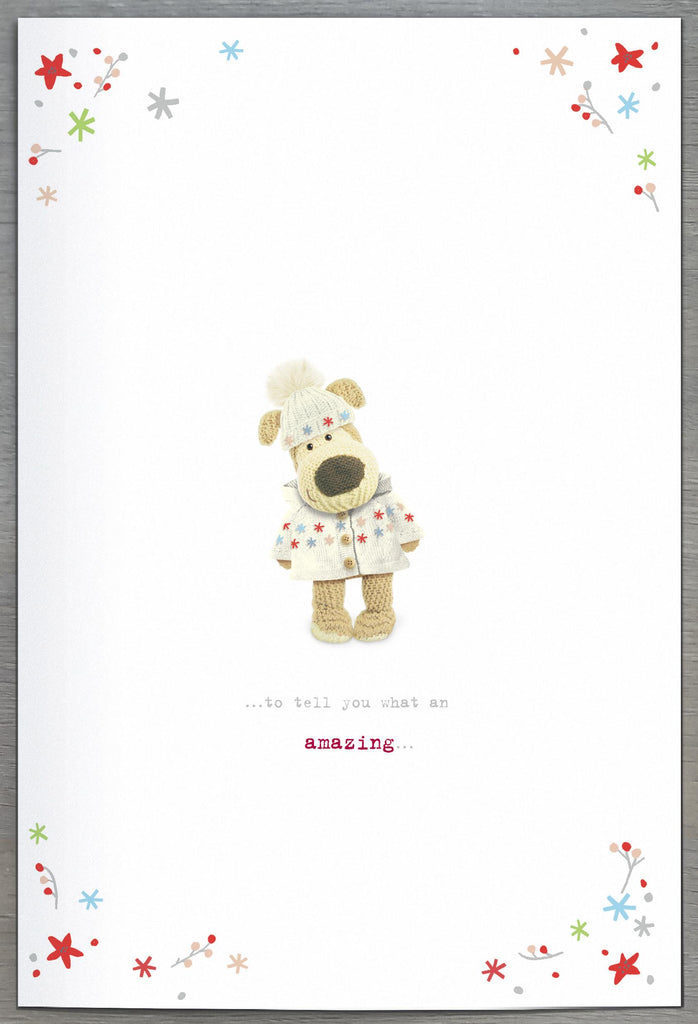 Celebrate the magic of Christmas with this charming Boofle Christmas card, specially designed for your daughter. Featuring Boofle’s lovable character, it brings warmth and joy to your festive greetings. Perfect for expressing your love and holiday wishes, this card adds a personal touch that your daughter will treasure. Make this Christmas unforgettable with a heartfelt message wrapped in Boofle’s delightful charm.