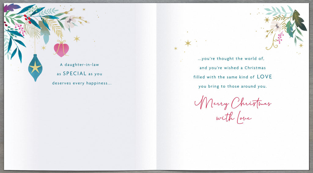 Celebrate the festive season with this elegant Christmas card designed especially for your daughter-in-law. Featuring a beautifully detailed wreath, it conveys warmth and appreciation, making her feel cherished and loved. Perfect for adding a personal, heartfelt touch to your holiday greetings.