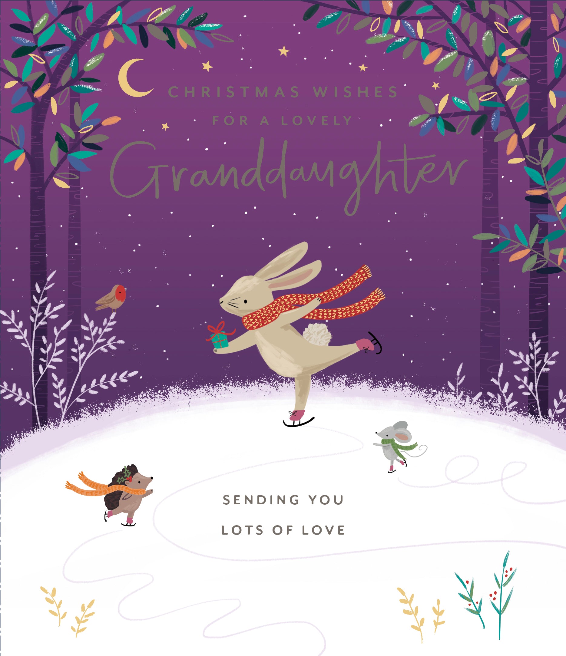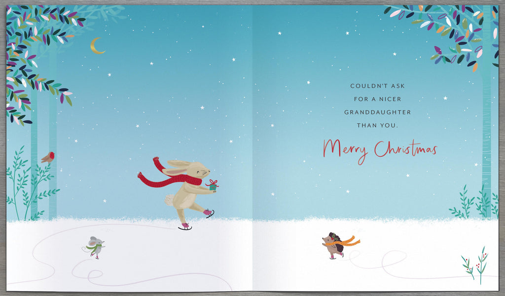 Celebrate the magic of the season with this charming Christmas card featuring a delightful skating hare, perfect for your granddaughter. Its whimsical design captures the joy and warmth of winter, making it an unforgettable way to send your love. Brighten her holidays with a card that combines festive spirit and heartfelt sentiment, creating a keepsake she’ll treasure year after year.