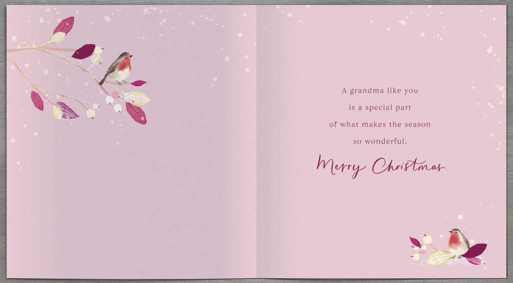 Celebrate the festive season with this charming Christmas card featuring delicate robins perched on a winter branch. Designed especially for grandmas, it brings warmth and joy with its heartwarming imagery, perfect for expressing your love and appreciation. Send thoughtful holiday wishes that will brighten her day and keep cherished memories close.