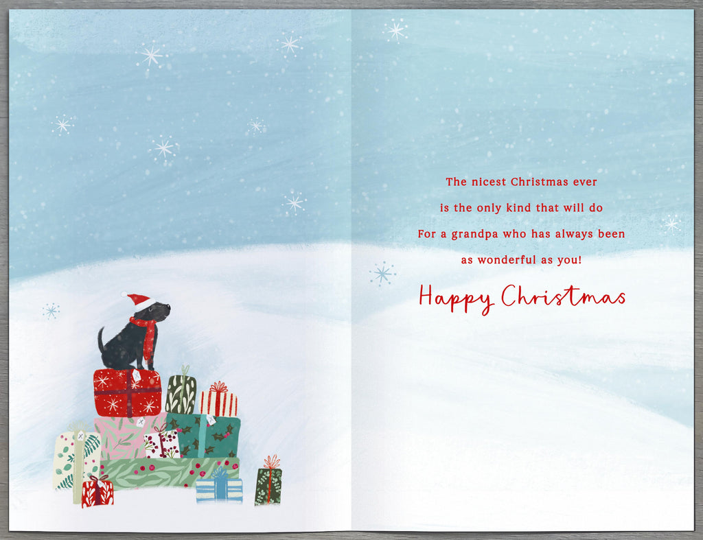 Celebrate the festive spirit with this charming Christmas card featuring a car packed full of presents, perfect for Grandpa. Its heartwarming design captures the joy of giving, making it an ideal way to show your love and bring a smile to his face this holiday season. Brighten Grandpa’s Christmas with a thoughtful message inside this delightful card.
