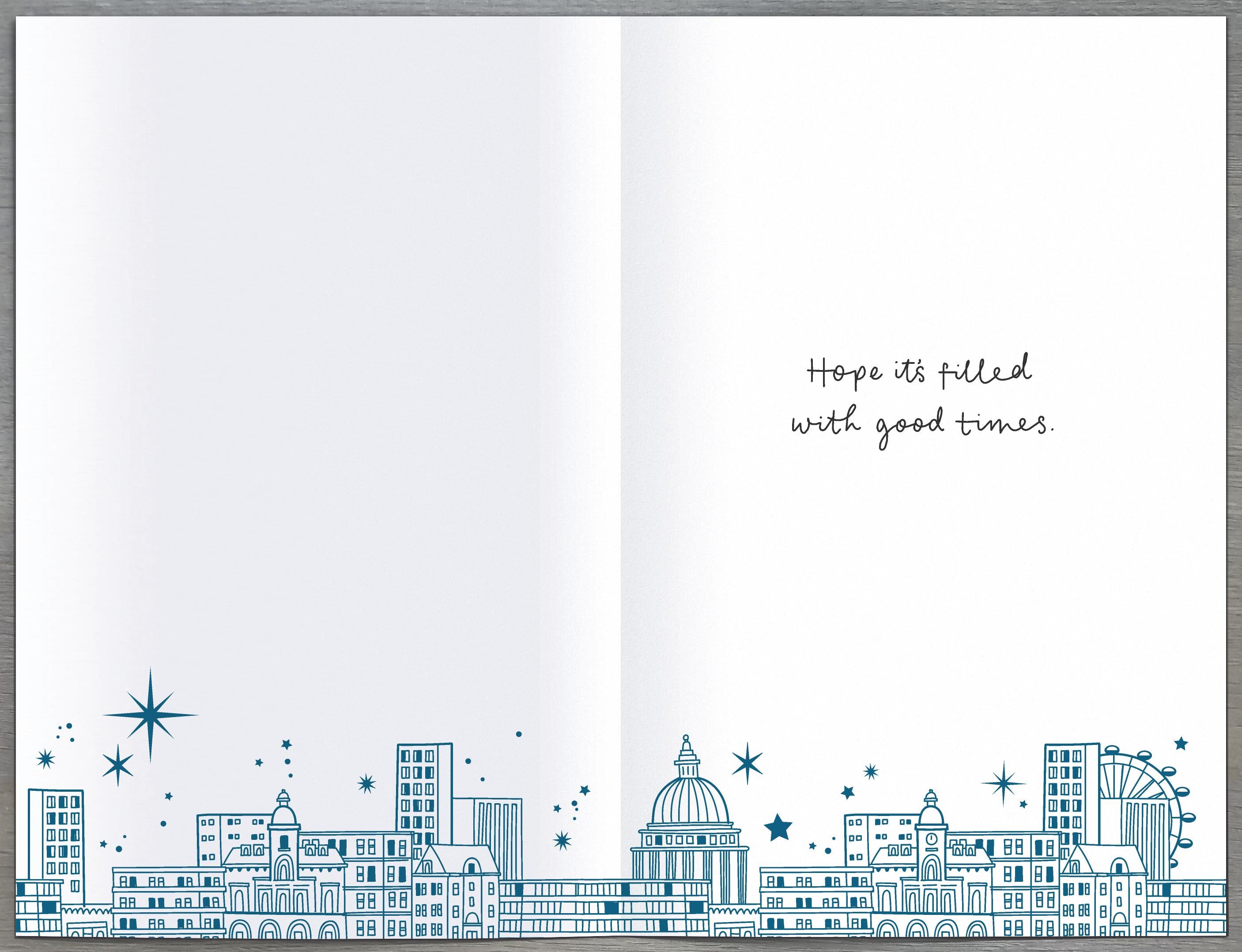Celebrate the festive season with our Christmas Card, Happy New Year - Skyline. Featuring a stunning city skyline design, this card perfectly conveys warm holiday wishes and joyful new year greetings. Its elegant style makes it ideal for sharing heartfelt messages with friends, family, or colleagues. Make your season’s greetings memorable and stylish with this beautifully crafted card.