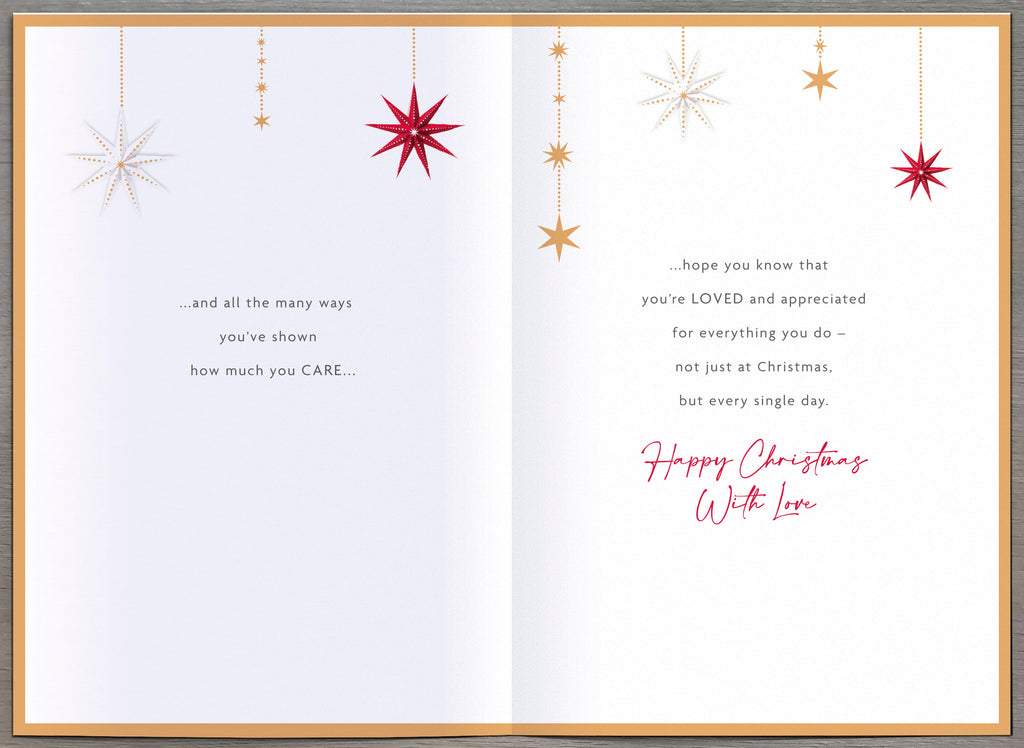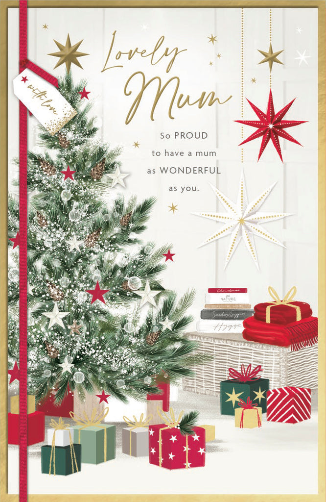 Celebrate the magic of Christmas with this heartfelt card designed especially for Mum. Featuring charming presents under the tree, it captures the festive spirit perfectly. Share your love and appreciation in a way that feels personal and warm, making this card a treasured part of her holiday memories. Ideal for adding a special touch to your seasonal greetings.