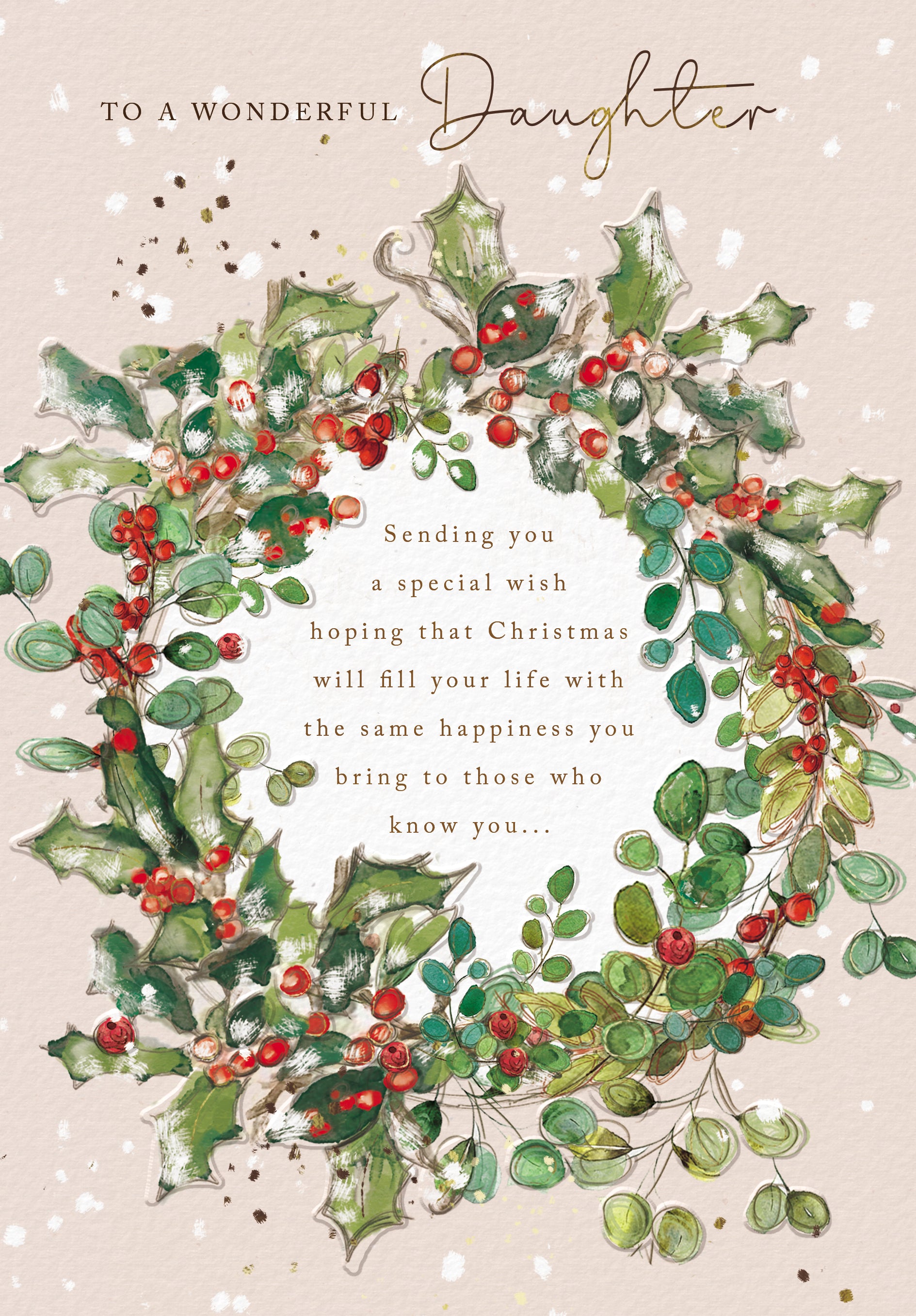 TO A WONDERFUL Daughter Sending you a wish hoping that Christmas will fill your life with the same happiness you bring to those who know you…¬…that you'll receive everything you could ever hope for in this year and the next and wish that every day and every moment of this magical season is absolutely perfect… …exactly as it should be for a wonderful Daughter like you Happy Christmas with much love