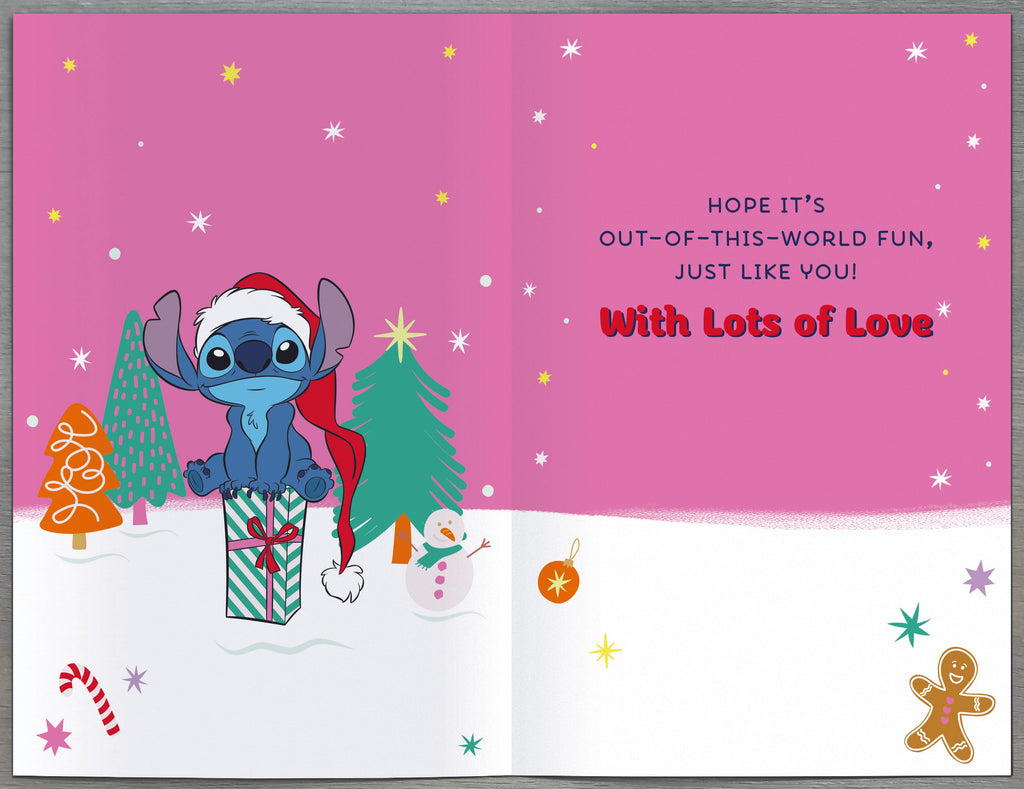 Celebrate the festive season with joy and charm by sending this delightful Disney Stitch Christmas card designed especially for daughters. Featuring the beloved Stitch character in a cheerful holiday setting, this card brings warmth and smiles to your daughter’s Christmas. Perfect for sharing your love and holiday wishes in a fun, memorable way that she’ll treasure year after year. Make her Christmas extra special with a card that captures the magic and spirit of the season.