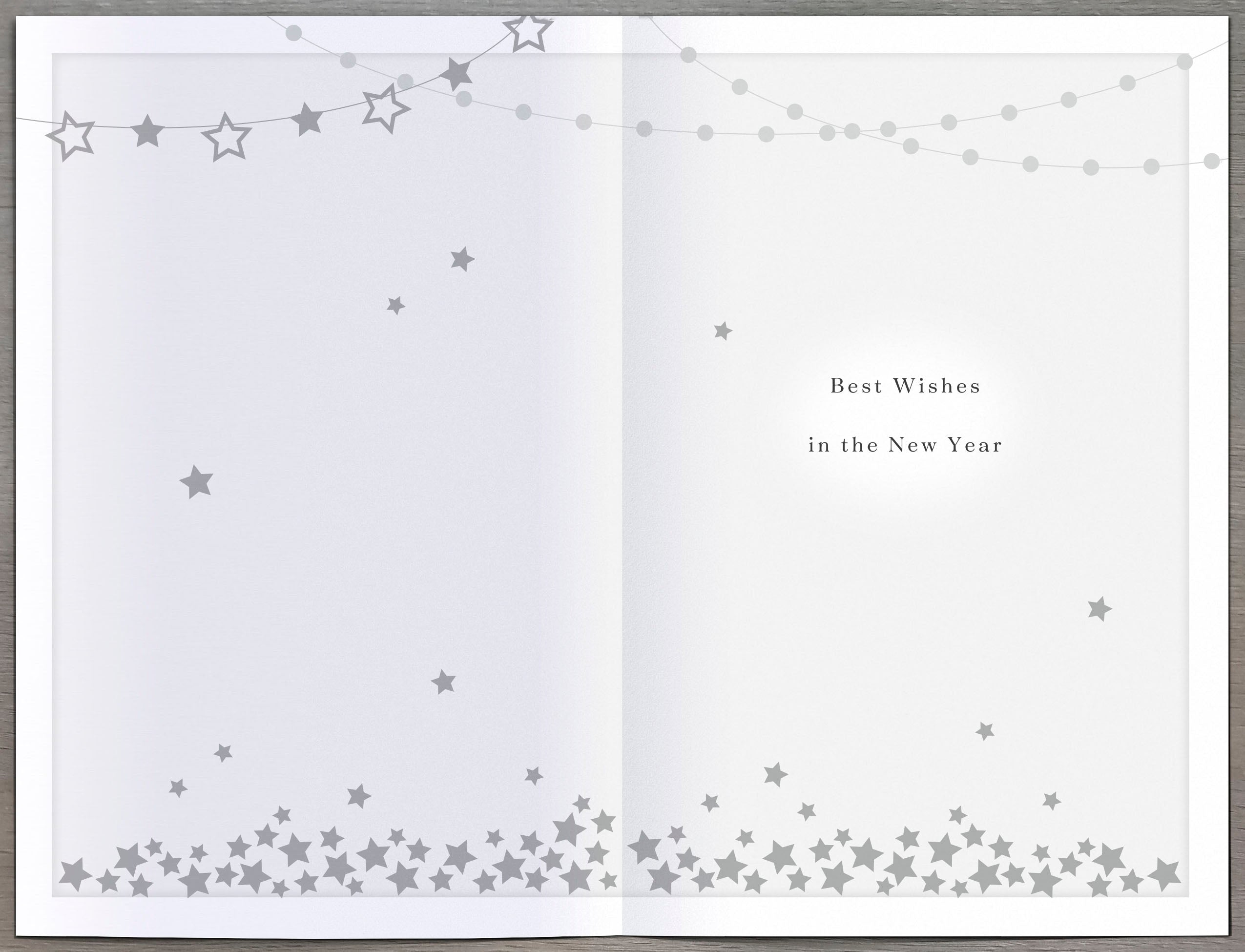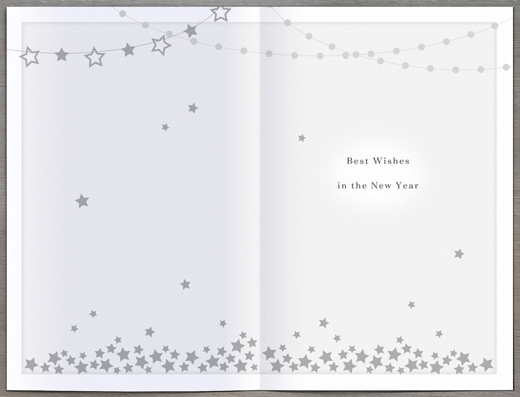 Celebrate the festive season with this elegant Christmas card featuring shimmering gold stars. Perfect for sending warm wishes and a joyful Happy New Year message, its sophisticated design adds a touch of sparkle to your greetings. Make your holiday wishes stand out and leave a lasting impression with this beautifully crafted card.