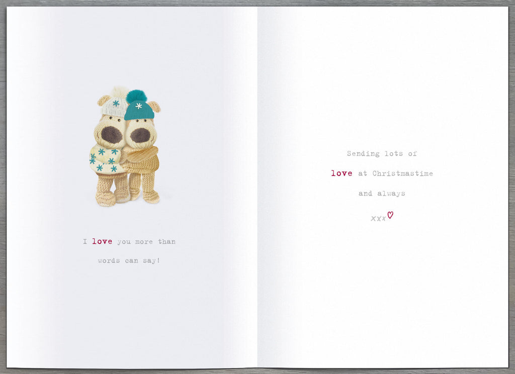 Celebrate the season with the charming "One I Love" Christmas card featuring Boofle. This heartfelt design is perfect for expressing your love and warm wishes to someone special. Crafted with care, it adds a personal touch to your holiday greetings, making your message unforgettable. Share joy and affection this Christmas with a card that truly speaks from the heart.