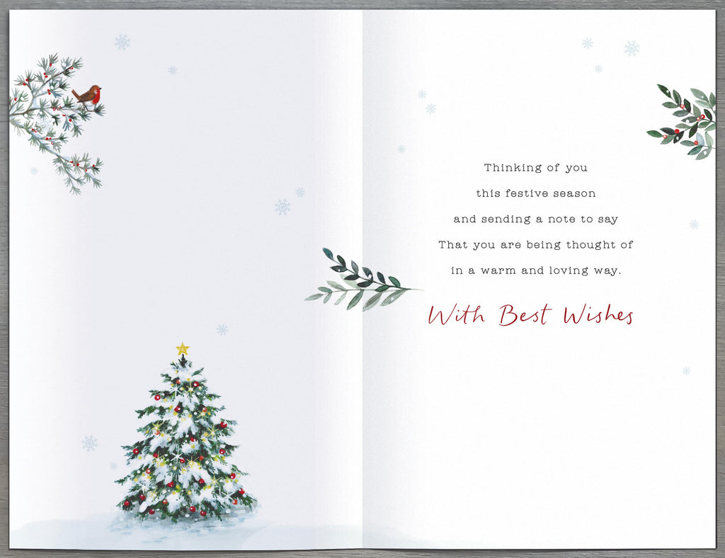 Send warm thoughts this festive season with our Christmas Card, Thinking Of You - Snowy Tree. Featuring a serene snowy tree design, this card beautifully conveys care and kindness to your loved ones. Its elegant imagery perfectly captures the quiet magic of winter, making it the ideal choice to express your heartfelt wishes and brighten someone's day.