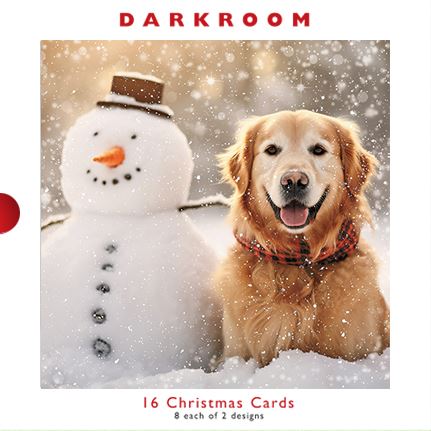 Boxed Cards - Darkroom, Snowman And Golden Retriever In The Snow