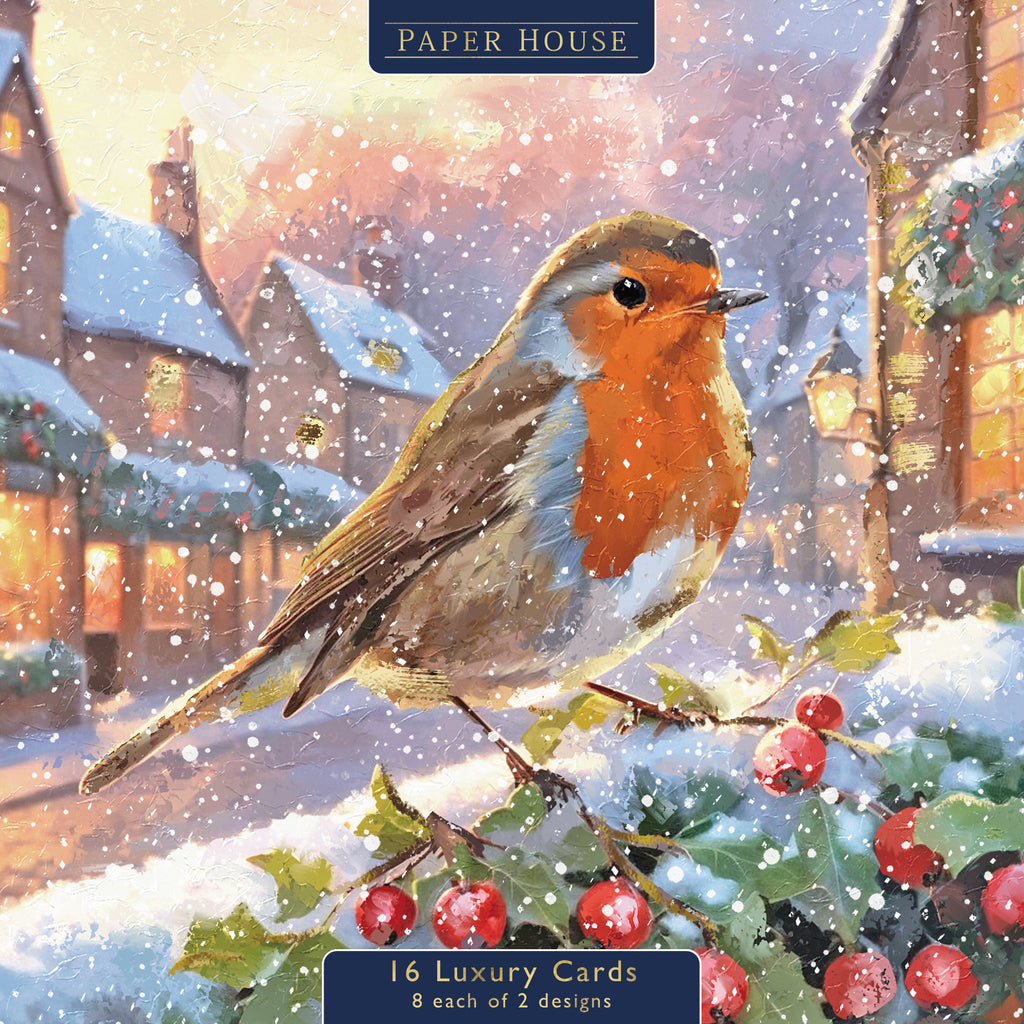 Boxed Cards - Paper House, Snowy Robin On Wall & Postbox