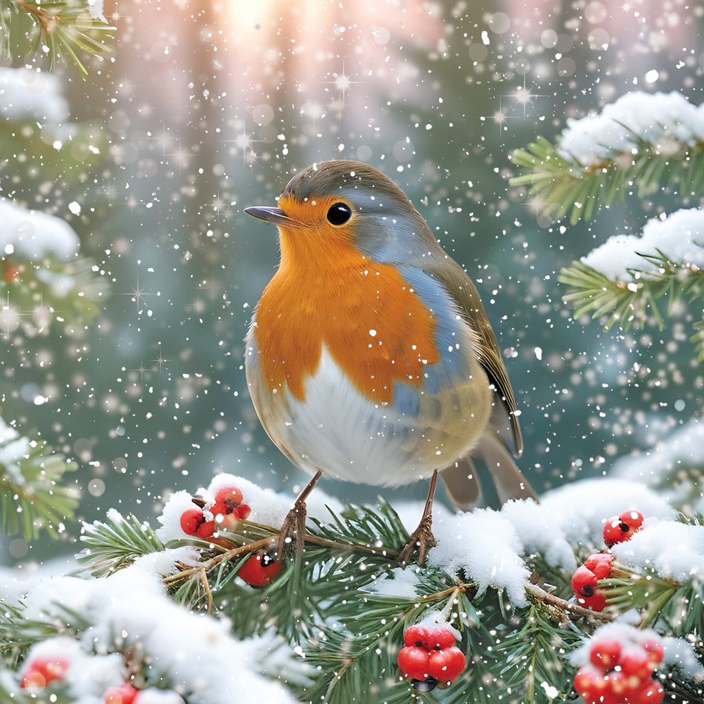 Boxed Cards - Darkroom, Snowy Robin On Berry Branch