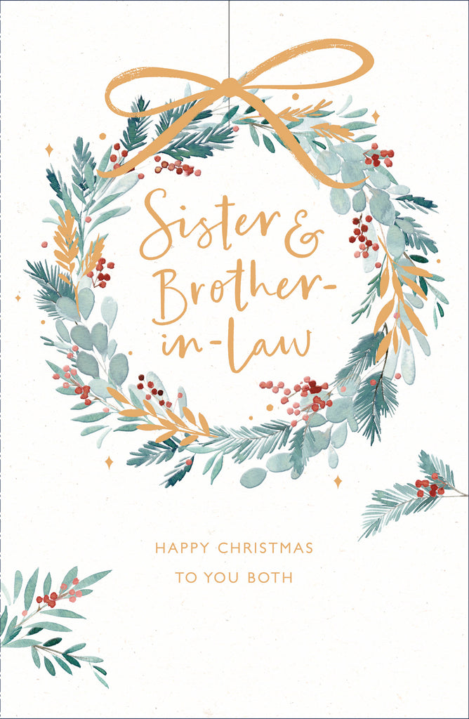 Christmas Card, Sister & Brother In Law - Eucalyptus Wreath