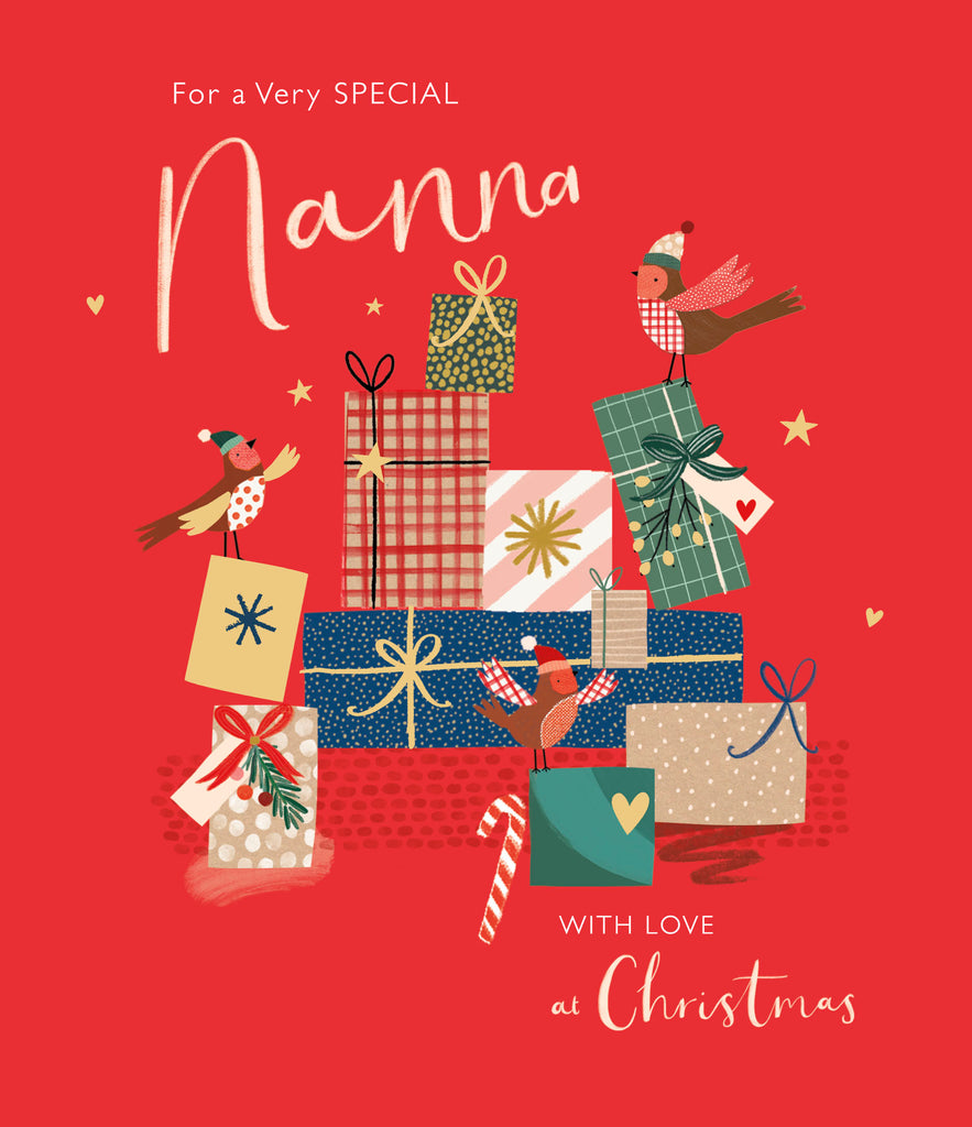 Christmas Card, Nanna - Stack Of Presents