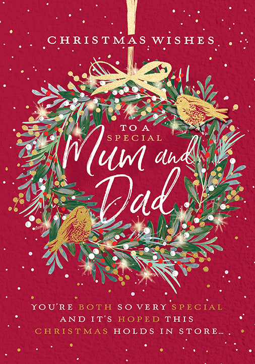 Christmas Card, Mum & Dad - Christmas Wreath