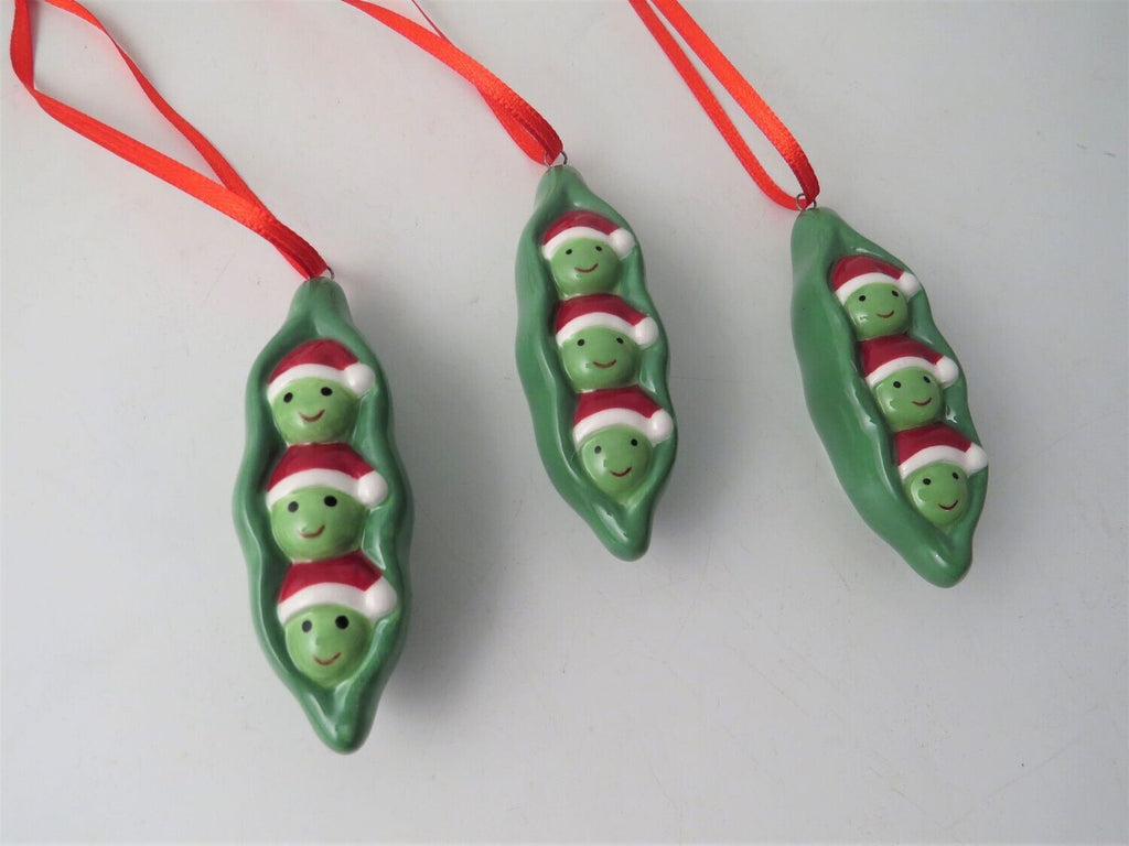 This charming 7cm ceramic Jelly Friend features a smiling pea in a pod wearing a Santa hat, perfect for adding a cheerful touch to your holiday decorations.