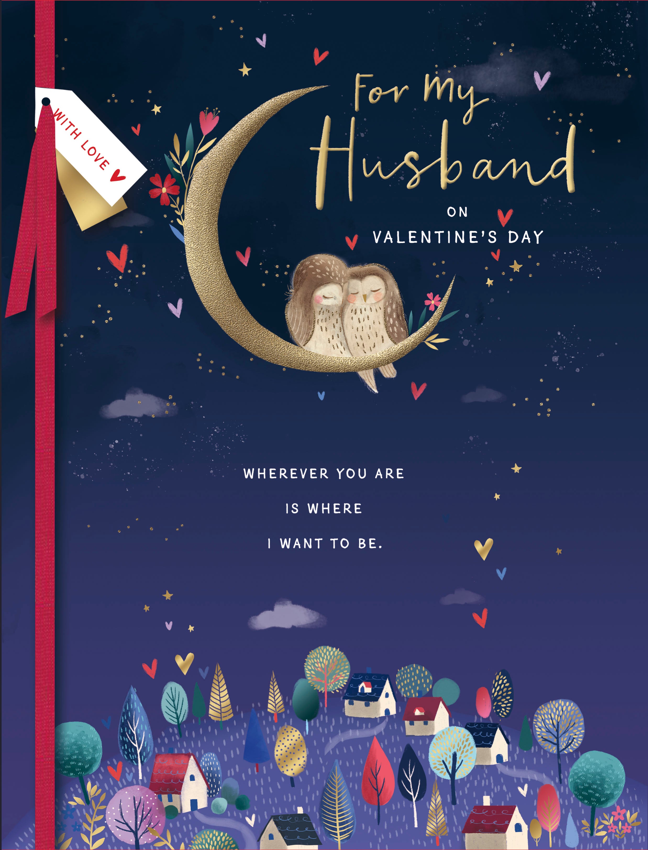 Valentine Card - Husband, Owls On Moon
