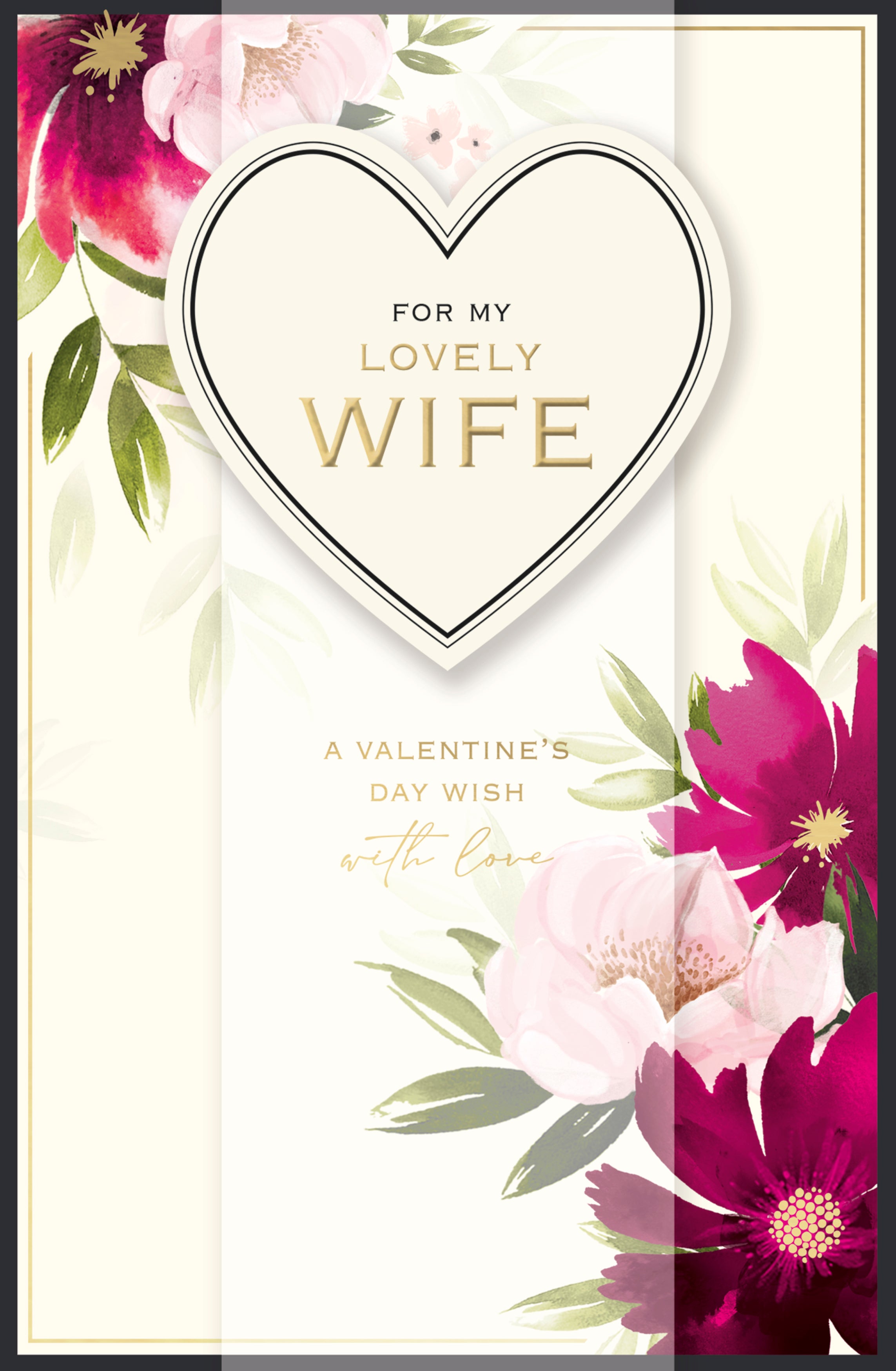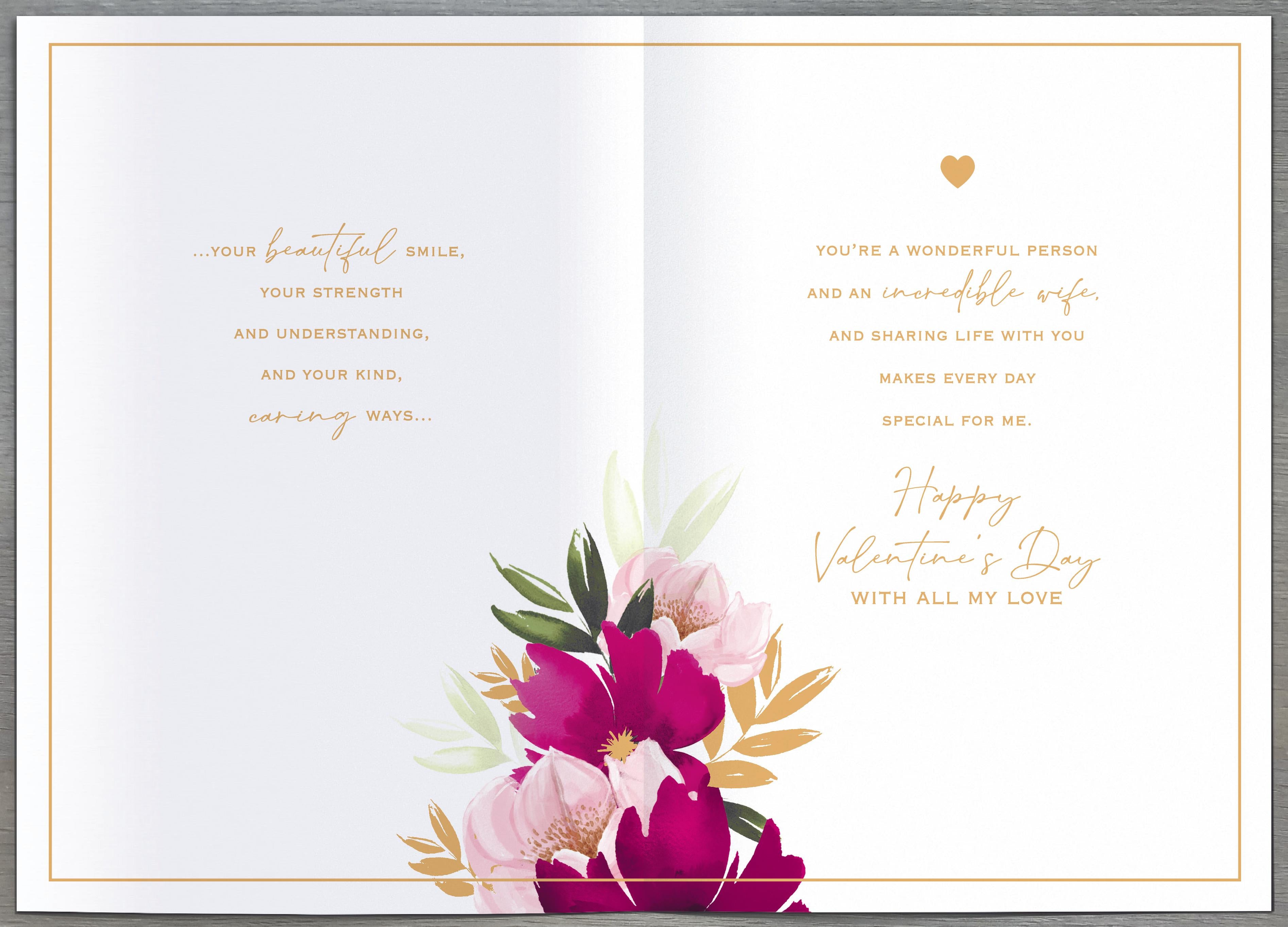 Valentine Card - Wife, Heart & Flowers