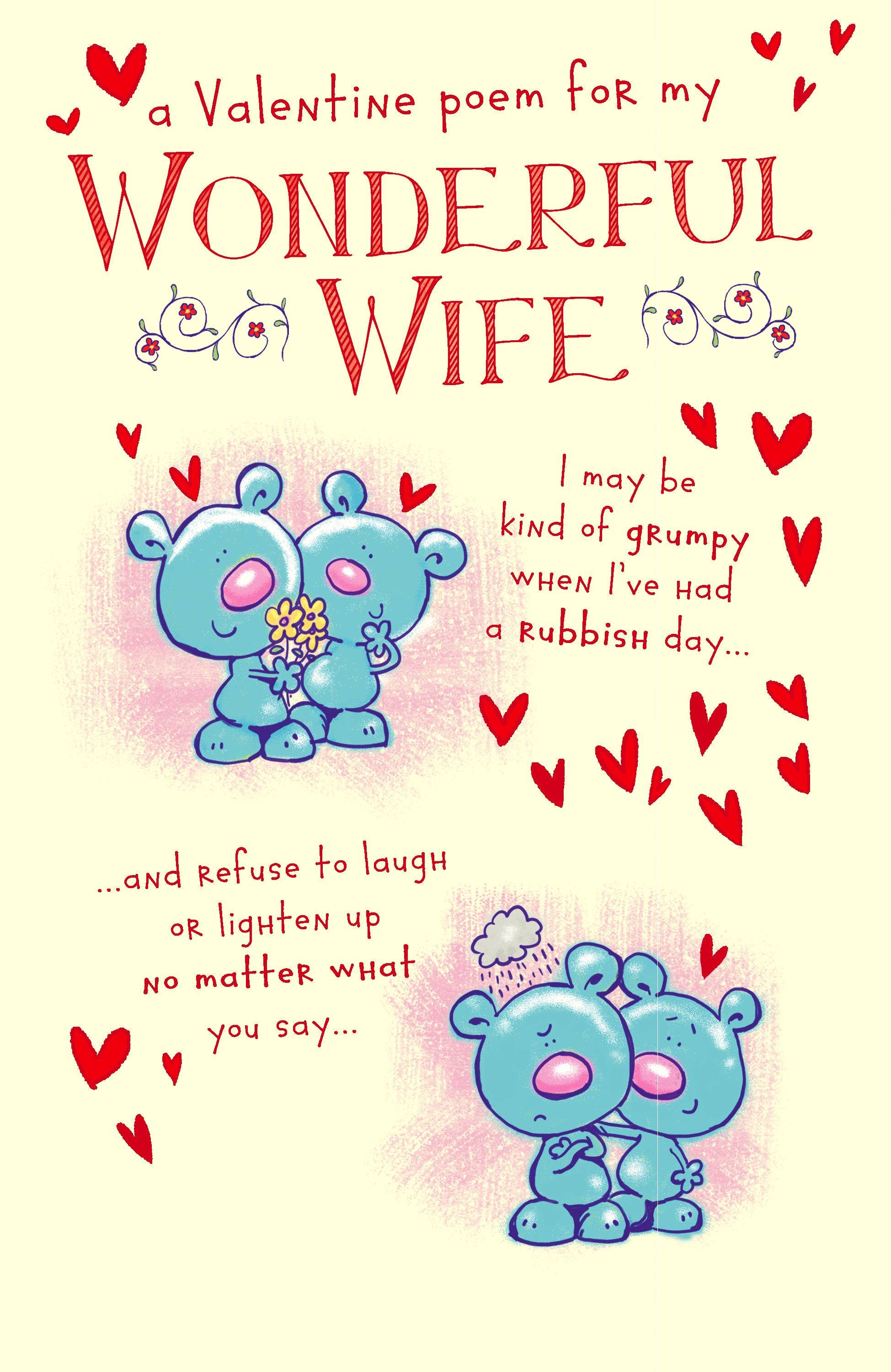 Valentine Card - Wife, Blue Bears