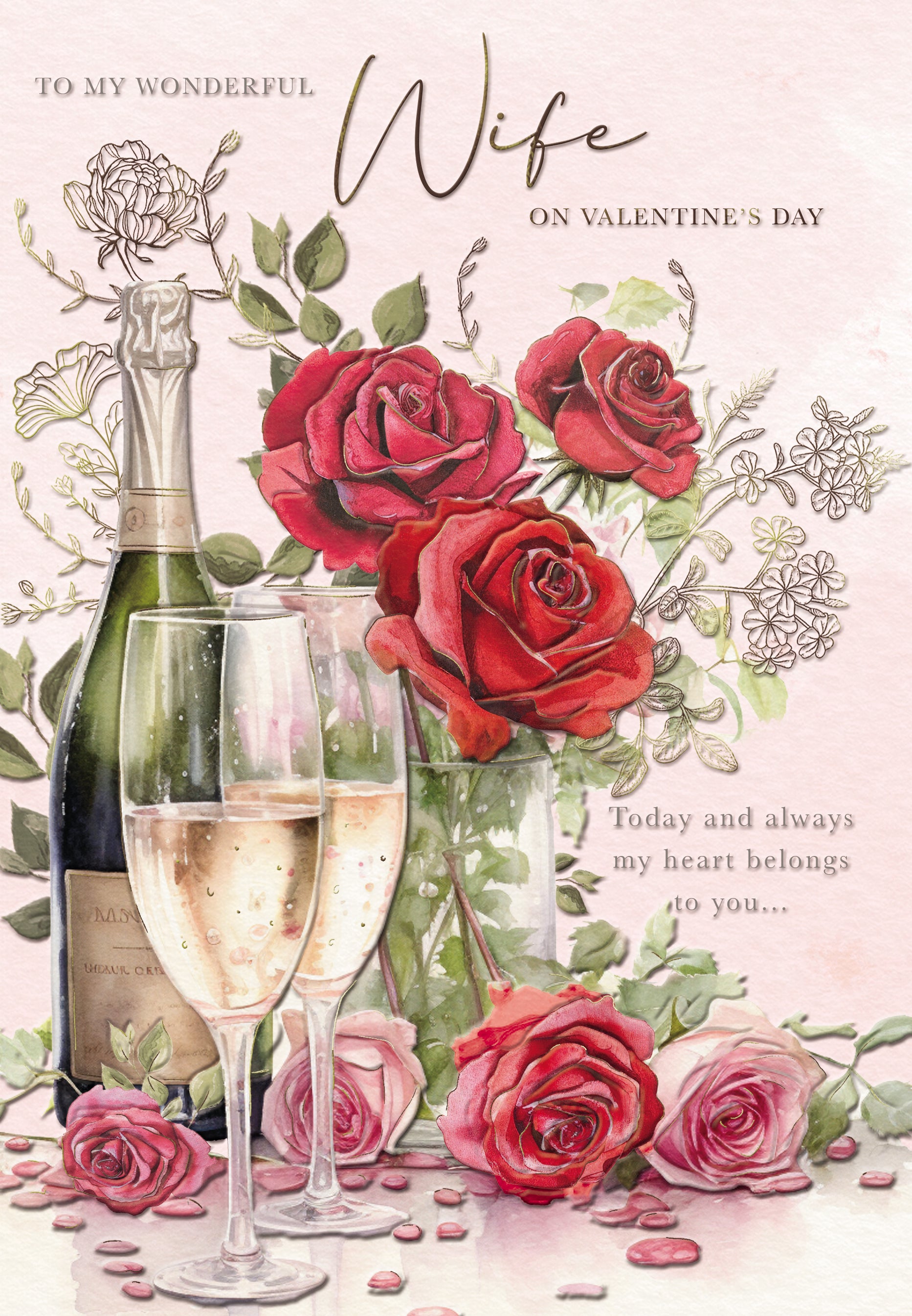 Valentine Card - Wife, Gold Roses & Champagne is backordered and will ship as soon as it is back in stock.