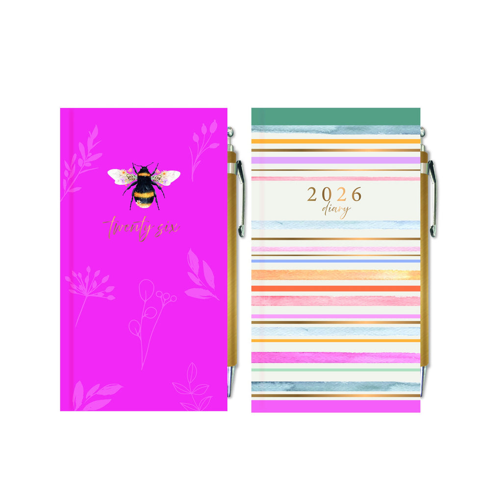 Diary 2026 - Week To View Slim Stripe & Bee With Pen, Assorted