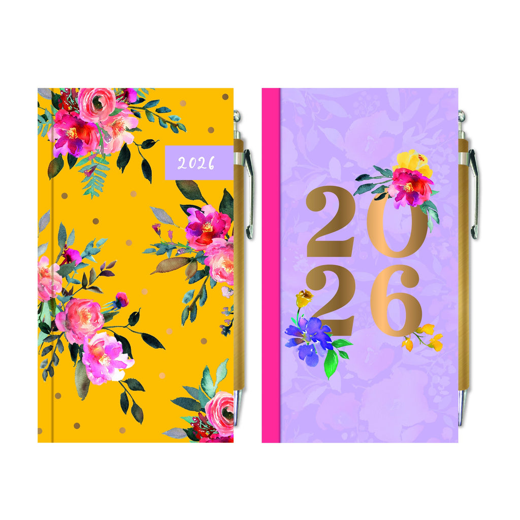Diary 2026 - Week To View Slim Floral With Pen, Assorted
