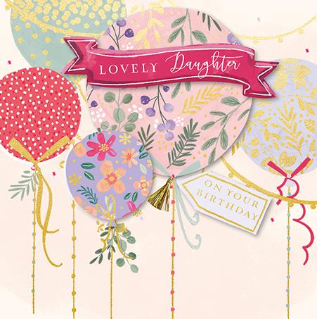 Birthday Card - Daughter, Floral Balloons