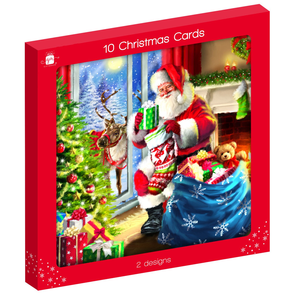 Share festive fun with this playful packet of 10 wallet-sized Christmas cards featuring a Traditional Santa design. Perfect for quick notes or little holiday greetings, these charming cards bring a touch of classic Christmas cheer wherever you send them.