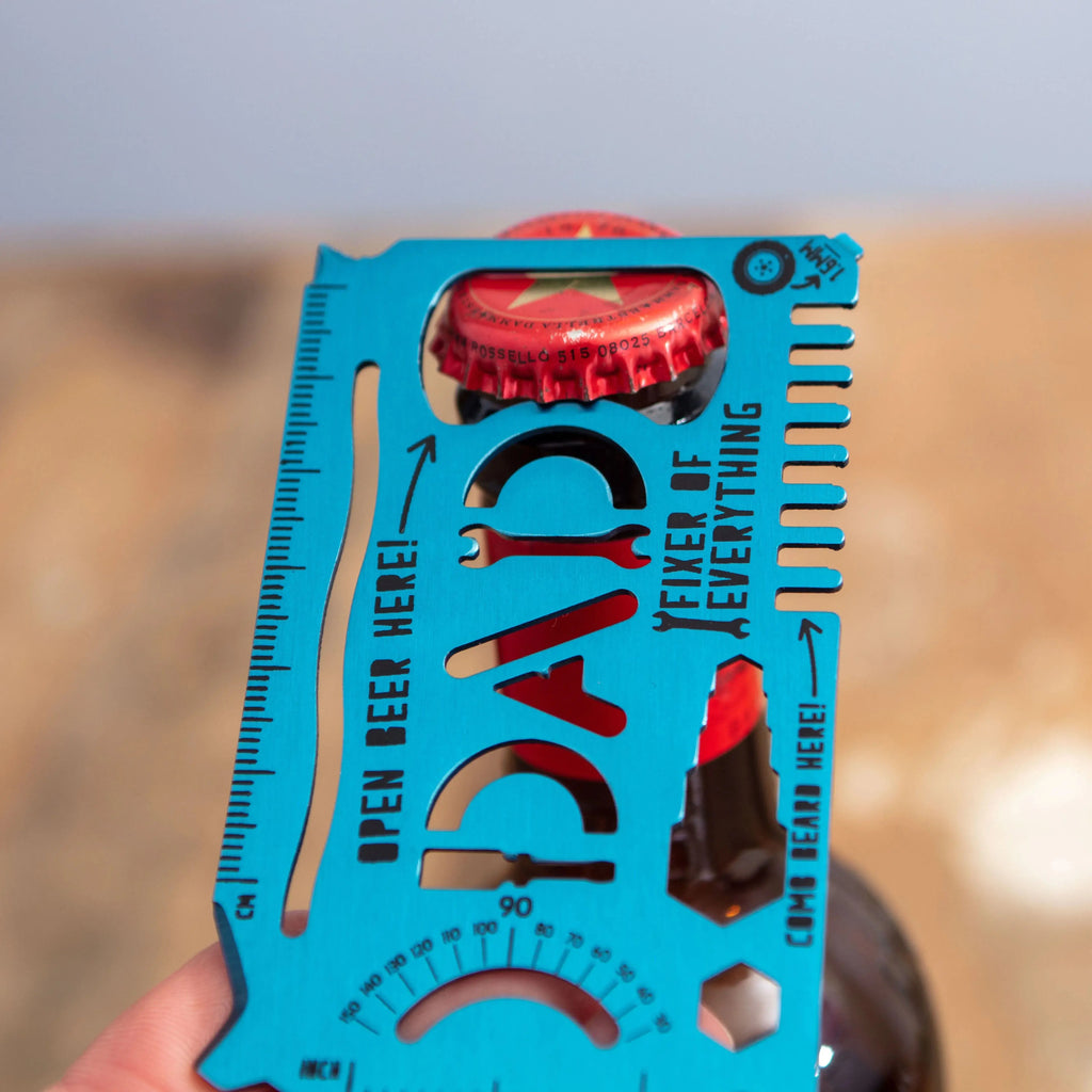 Dad, it's time to upgrade your toolkit with our Dad of All Trades Multi-Tool. With over 17 functions in one compact gadget, you'll always have the right tool for any job. Perfect for on-the-go fixes, it's the ultimate wallet accessory for any handyman. Give the gift of convenience with this novelty tool for Father's Day or birthdays.