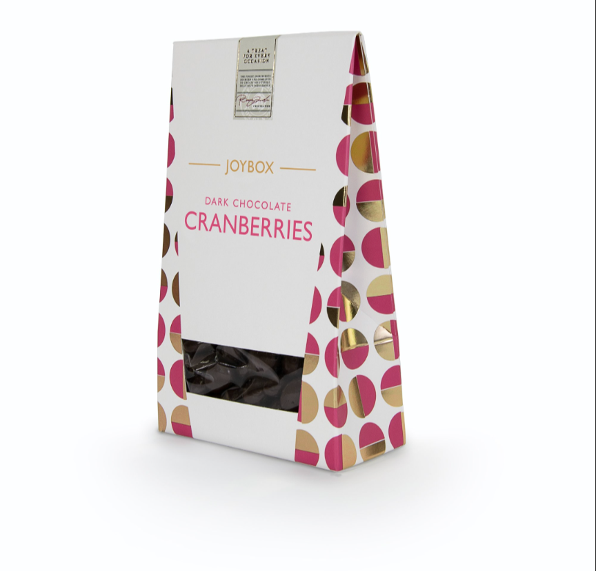Cranberries coated in Dark Chocolate. 150g box